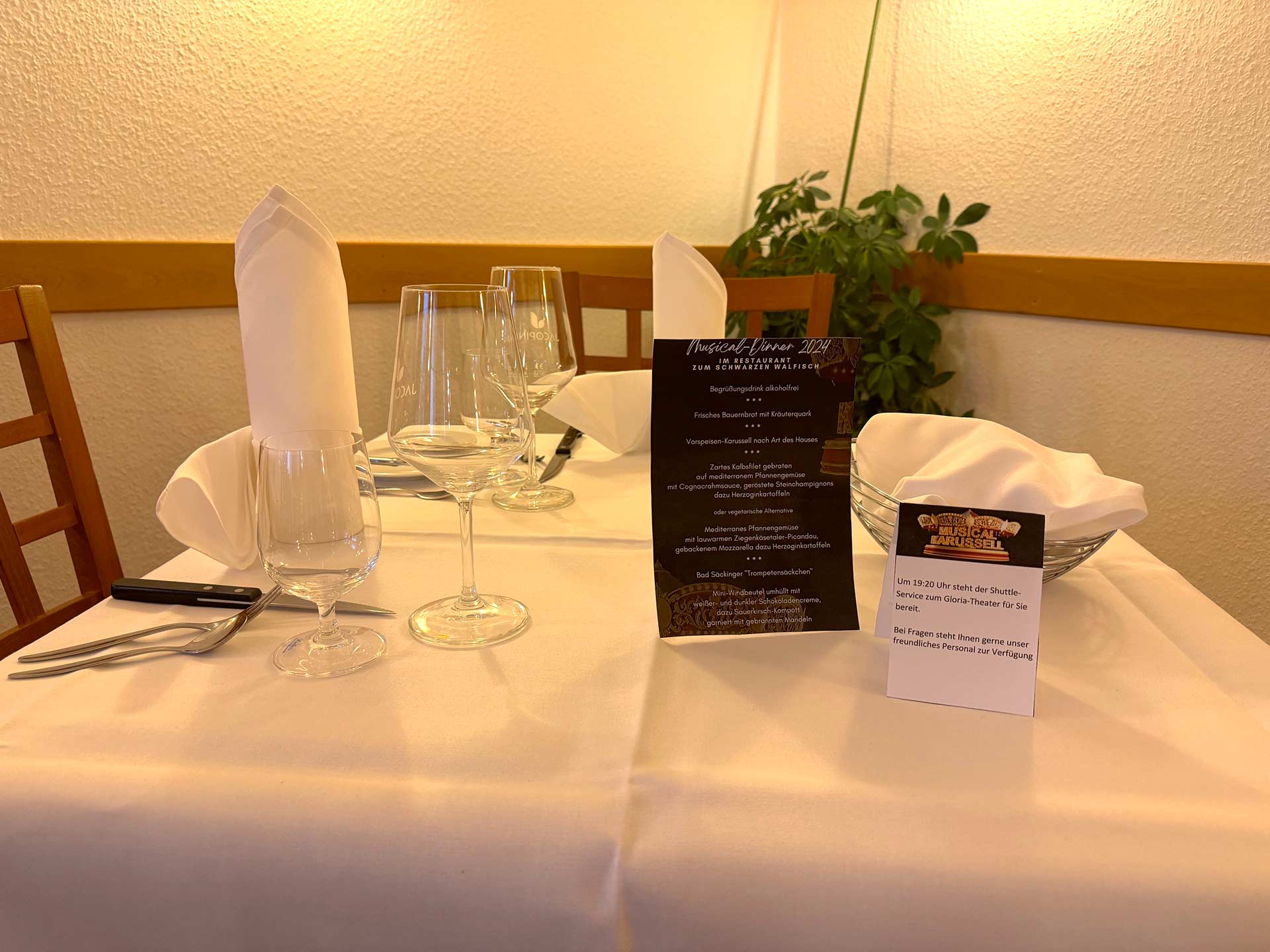 In Kooperation mit dem Gloria-Theater bietet das Hotel-Restaurant Zum Schwarzen Walfisch zur neuen Produktion „Musical Karussell“ ein ganz besonderes Highlight: unser „Special Musical Dinner“.